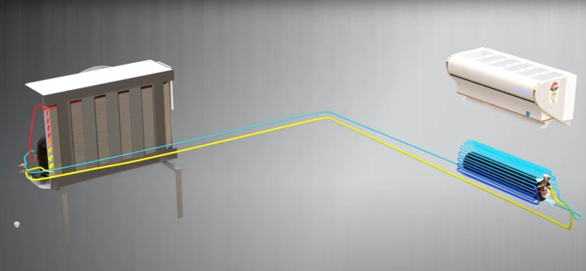 An Air Conditioner takes away the room’s heat and transfers it to outside, thereby cooling the space. The flow involves converting refrigerant gas into the liquid state then again to the gaseous state at convenient temperatures.